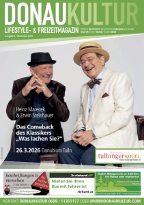 Foto: Xenia Trampusch KONTAKT DONAUKULTUR 0699 / 11351177 ODER MVM@DONAUKULTUR.COM DONAUKULTUR Ausgabe 4 / November 2025 LIFESTYLE- & FREIZEITMAGAZIN BENEFIZ BUCHTIPPS GESUNDHEIT JUBILÄEN KULINARIK KULTUR KUNST MUSIK TENNIS WEIN Mieten Sie Ihren Bus mit Fahrer:in! richard.at Täglich Mittagsmenü um 9,50 Euro mit Fleisch oder vegetarisch Mittwoch und Donnerstag Ruhetag Reservierung unter 02231 62 971 • www.hochramalpe.at Heinz Marecek & Erwin Steinhauer Das Comeback des Klassikers „Was lachen Sie?“ 26.3.2026 Danubium Tulln www.tulbingerkogel.at