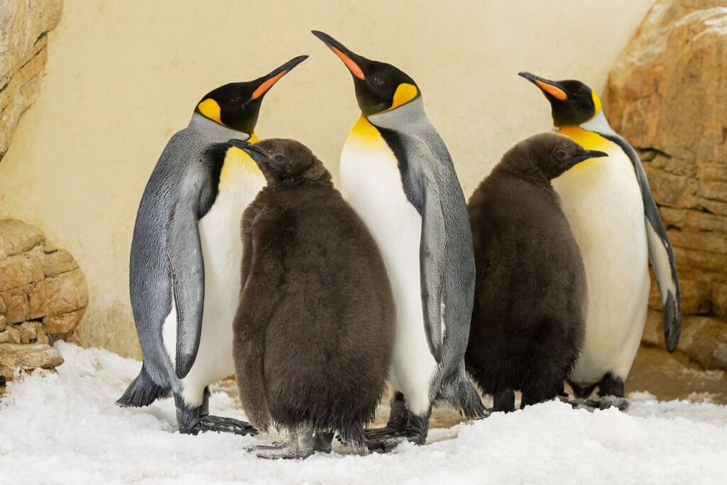 Im Tiergarten Schönbrunn gibt es diesmal Pinguinküken im Doppelpack. Gleich bei zwei Königspinguin-Paaren ist im Juli jeweils ein Jungtier geschlüpft. Mit ihrem braunen Dunenkleid sind die Küken sehr leicht von ihren Eltern zu unterscheiden und gehen im Gegensatz zu diesen noch nicht ins Wasser. Denn ihr wasserabweisendes Gefieder bekommen die Jungvögel erst mit etwa zehn Monaten.